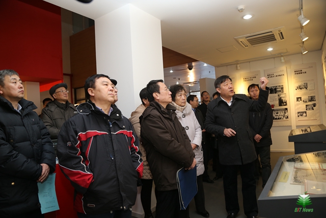 揭幕儀式后,在校黨委宣傳部的支持下,由北理工機(jī)電學(xué)院、中國(guó)科協(xié)老科學(xué)家學(xué)術(shù)成長(zhǎng)資料采集工程“徐更光院士采集小組”共同舉辦的《永恒的光輝——徐更光院士展》在校藝術(shù)館開(kāi)展。展覽用圖片、實(shí)物、聲像資料等多種形式全面展現(xiàn)了徐更光院士近60年學(xué)術(shù)生涯的成長(zhǎng)經(jīng)歷、主要學(xué)術(shù)貢獻(xiàn)和他的“創(chuàng)新、求實(shí)、愛(ài)國(guó)、奉獻(xiàn)”精神,與會(huì)人員紛紛在徐院士銅像和展板前瞻仰駐足、合影留念。
