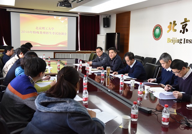 1月14日下午,北京理工大學2016年特殊類型招生考試協調會在2號樓211會議室召開。副校長孫逢春,紀委副書記、監察室主任魏名山,招生就業工作處處長李振鍵、副處長張東,校團委書記肖雄,體育部主任董兆波,后勤集團常務副總經理宋希博,外國語學院院長李京廉,設計與藝術學院黨委書記郭宏,黨委宣傳部副部長王征,保衛處副處長趙宏宇,財務處副處長王蓉,藝術教育中心副主任王立群等同志出席了會議。會議由李振鍵主持。