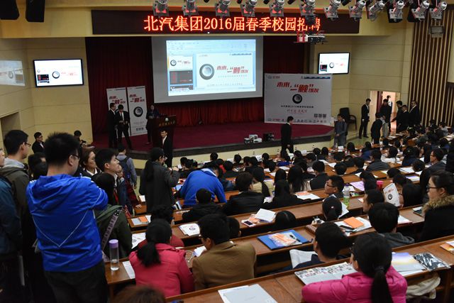 北汽集團(tuán)作為我校人才輸送的重點(diǎn)單位,2015年共接收我校畢業(yè)生138人,接收數(shù)量名列全國(guó)高校首位。本次招聘會(huì)是北汽集團(tuán)2016年春季在全國(guó)高校中舉辦的首場(chǎng)招聘活動(dòng),招聘專(zhuān)業(yè)涉及車(chē)輛工程、機(jī)械自動(dòng)化、熱能與動(dòng)力工程、電子信息工程、軟件工程、工商管理、市場(chǎng)營(yíng)銷(xiāo)、經(jīng)濟(jì)學(xué)等,吸引了近千名校內(nèi)外畢業(yè)生前來(lái)參會(huì)。在宣講會(huì)上,北汽集團(tuán)各成員單位宣講了公司概況、發(fā)展前景等內(nèi)容。宣講結(jié)束后,在體育館南廳進(jìn)行了現(xiàn)場(chǎng)招聘。