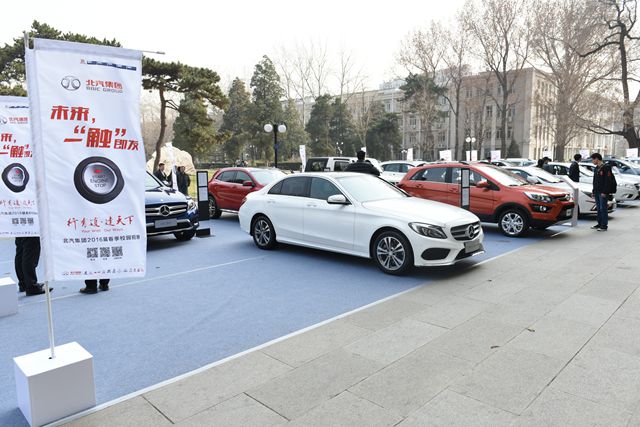 招聘會(huì)當(dāng)天,為加強(qiáng)畢業(yè)生們對(duì)北汽集團(tuán)企業(yè)文化的了解,北汽集團(tuán)在中心教學(xué)樓前同步舉辦了車(chē)展活動(dòng)。