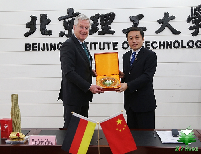 2016年3月28日,德國弗萊堡大學(xué)(University of Freiburg)校長Hans-Jochen Schiewer教授一行訪問北京理工大學(xué),校長胡海巖院士、副校長方岱寧院士會見了客人。