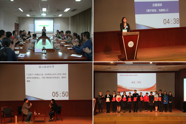 此次比賽分為初賽和決賽兩個階段。前期由北京市各高校初選推薦,共有57名專職輔導員參加比賽,經過基礎知識測試和網文寫作兩個環節筆試,其中20名輔導員進入決賽。決賽通過主題班會、案例分析、主題演講、談心談話等四個環節,全面考察輔導員的各項工作能力。在主題演講環節,張揚運用互聯網思維,結合網絡熱議事件的討論,深刻詮釋了“勇于擔當 為國育人”的主題。在談心談話環節,面對“學生推優入黨,家長前來送禮”的情景再現,張揚條理清晰地解答家長的疑慮,充分展現了一名輔導員的職業素質。最終憑借四個環節的綜合表現,取得了優異的成績,榮獲本次大賽二等獎。