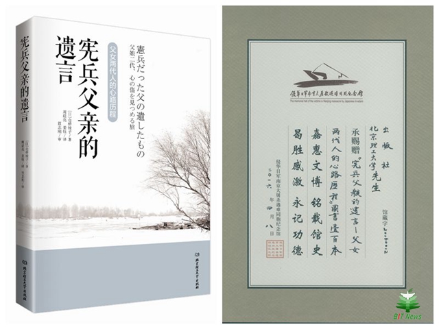 本書作者倉橋綾子女士的父親大澤雄吉,是一位參與過侵華戰爭的日本憲兵,在病重之時,拿出一張紙條,要求將紙條上寫的自己對中國人民的愧疚與懺悔刻在自己的墓碑上。為此,作者背負著沉重的心理壓力,走上了漫長的追溯真相的道路。倉橋女士多次來到中國,探究父親在戰爭中所犯下的罪行,替父親的行為向中國人民道歉謝罪。最終,作者沖破家庭、生活、社會的種種阻力,實現了父親的遺愿,為父親立起了“謝罪碑”。作者倉橋女士曾委托東史郎先生將其父親“謝罪碑”的相片轉交給南京大屠殺遇難同胞紀念館,并參加第15次“悼念南京大屠殺遇難者植樹訪華團”來到南京植樹,為侵略戰爭贖罪,為中日友好祈福。紀念館王偉民副館長在現場展示了當時留存的相關資料。