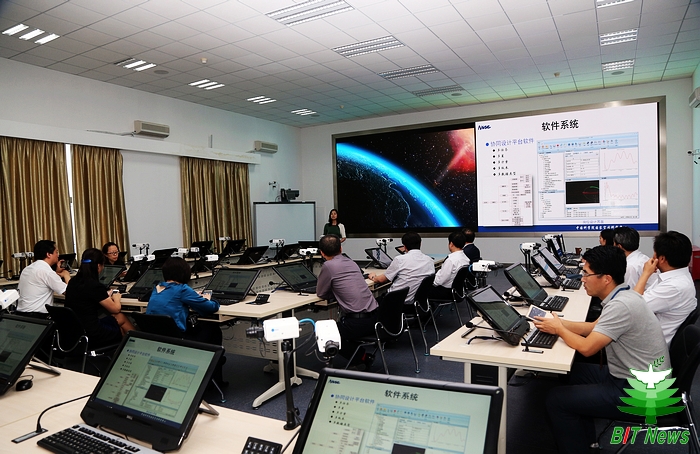 調研期間,胡海巖一行參觀了空間環境預報大廳、微波遙感技術重點實驗室、復雜航天系統電子信息技術重點實驗室、863重點項目“地球同步軌道毫米波大氣溫度探測儀”現場、空間科學任務論證大廳。