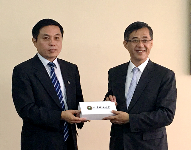 胡海巖校長對姚立德校長一行表示歡迎,對姚校長多年來重視與北京理工大學的合作,關心和愛護在臺北科技交流學習的北理工學子表示感謝。會談中,胡海巖校長著重介紹了學校近幾年在拓展對外交流與合作方面取得的成績。他說,2013年以來,北理工和臺北科技開展了教師合作專項計劃,希望兩校能在現有的教師合作基礎上,由點及面,深化團隊科研合作。