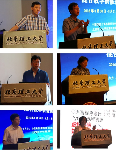 編輯:王雪 審核:栗蘋 藺偉 閱讀次數:為落實《教育部關于中央部門所屬高校深化教育教學改革的指導意見》(教高[2016]2號 )精神,創新在線課程共享與應用模式,推動優質大規模在線開放課程共享,由中國高校計算機教育MOOC聯盟、北京理工大學教務處、北京理工大學計算機學院主辦的“全國大學計算機MOOC+SPOC混合教學研討會”,于8月30日、31日在北京理工大學召開。作為中國高校計算機教育MOOC聯盟“大學計算機課程群”的引領者,北京理工大學國家級“大學計算機虛擬仿真實驗教學中心”應合作高校之要求,同來自全國各地50多所高校的百余名教師,圍繞“解決MOOC+SPOC教學中出現的實際問題”這一主題,研討大學計算機混合教學方法。