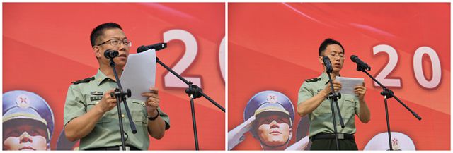 一營營長盧兵兵作為帶隊教官代表發言。全體教官將嚴格遵守軍訓的有關要求和學校的管理規定,積極配合工作;在訓練中嚴密組織、耐心指導;認真履行教官職責,強化自身素質,展現良好形象,以過硬的軍事本領和良好的軍人作風做到言傳身教,使軍訓成果達到預期目標。