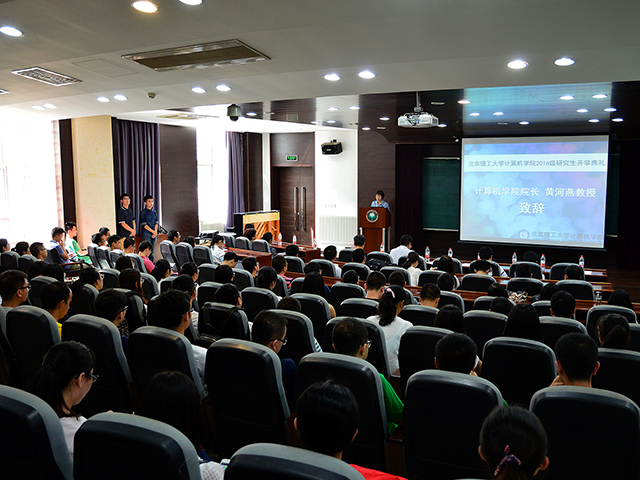9月6日下午兩點,計算機學院2016級研究生開學典禮暨入學教育在研究生樓101室隆重舉行。學院院長黃河燕、黨委書記藺偉、副院長鄭軍、副院長祝烈煌、黨委副書記副院長奚英倫等院領導出席開學典禮。教學干事來林靜、輔導員郝志敏、學生干事董霞以及全體研究生新生參加了活動。活動由學院黨委副書記副院長奚英倫主持。