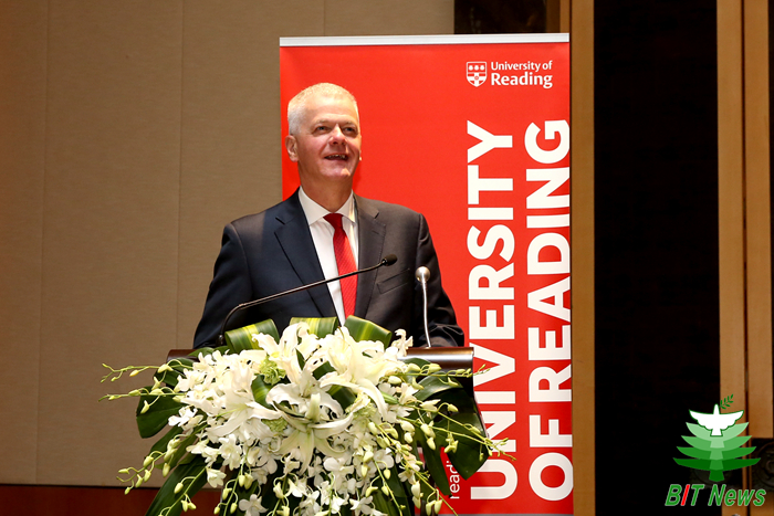 胡海巖校長對里丁大學授予他榮譽理學博士學位向David Bell校長表示感謝。他說,這不僅是他個人的榮譽,也是對北理工每一位促進兩校合作人員的嘉獎,對推動雙方進一步合作具有重要意義。胡海巖高度贊揚了里丁大學建校90年來取得的輝煌成就,表示大學的聲譽和發(fā)展與學校的校友成績和社會貢獻息息相關,他通過北理工70多年發(fā)展歷程、杰出校友事跡、北理工2020年戰(zhàn)略規(guī)劃目標向在座嘉賓闡述了北理工在中國現(xiàn)代化建設和國家戰(zhàn)略發(fā)展中起到的引領作用,希望通過師資隊伍建設和國際合作等措施進一步加強人才培養(yǎng),為社會輸送更多的杰出人才,為促進兩校和中英教育合作貢獻力量。