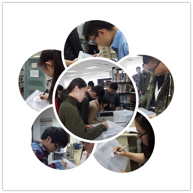 此舉措在讀者中大受歡迎, 拿到收納箱的同學們,高興地在箱子側面簽上自己的名字,以防拿錯,隨后開始整理自己的書本等物品,歸置于收納箱中。此舉效果立竿見影,雜亂的桌面立刻重新恢復清凈,閱覽室整體環境也得到了極大的改觀。作為每年的考研專用箱,這些收納箱將會被循環使用,承載著每一屆考研讀者的故事,相信寫滿北京理工大學歷屆考研讀者名字的收納箱,將會成為一道靚麗的風景線。