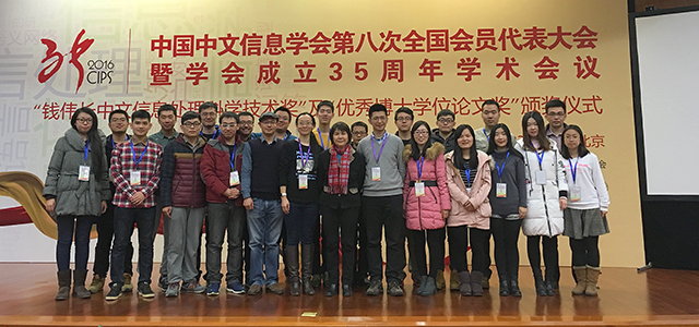 2016年12月23-24日,中國中文信息學(xué)會第八次全國會員代表大會暨學(xué)會成立35周年學(xué)術(shù)會議在北京中國科技會堂隆重舉行。中國科協(xié)魏軍鋒副部長,教育部語言文字信息管理司田立新司長,學(xué)會支撐單位、中國科學(xué)院軟件研究所趙琛所長等領(lǐng)導(dǎo)到會祝賀并講話。北京理工大學(xué)計(jì)算機(jī)學(xué)院院長黃河燕教授及北理工計(jì)算機(jī)學(xué)院自然語言處理團(tuán)隊(duì)部分師生參加會議。