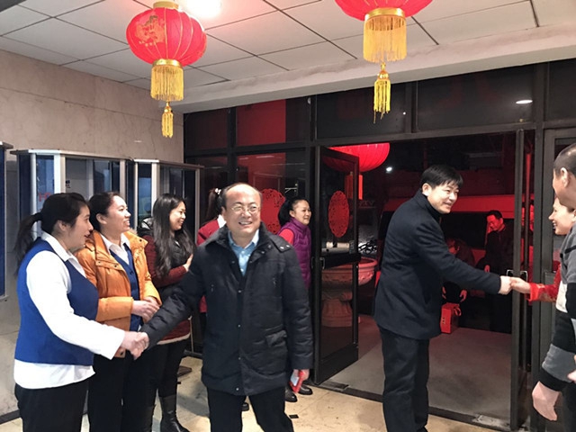 集團負責人一行先后來到延園餐廳、理工招待所、家屬區監控室、零修中心備班室、能源中心鍋爐房、商業中心客運部、學生公寓女子小區、能源中心東總配電室。每到一處,集團領導詳細詢問運行情況、與值守人員親切交談,并送上新年美好的祝福,四九寒冬,暖意融融,到處洋溢著春節喜慶的氛圍。