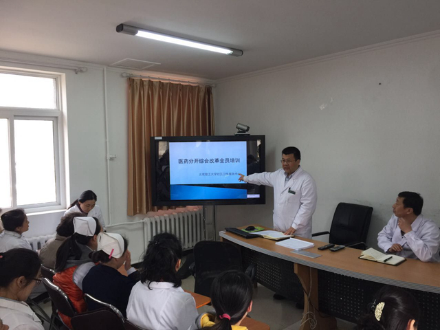 校醫院先后多次召開院務會、科室主任會和全體醫務人員大會,認真學習、解讀北京市醫藥分開綜合改革實施方案和學校醫藥分開綜合改革實施方案,對可能產生的問題和矛盾制定了應急工作預案,并密切關注北京市各項實施細則的陸續出臺,及時調整工作方案。中關村和良鄉兩校區從醫院信息系統更新維護,到藥品遴選、采購、調配,重點人員及重點專項培訓等一系列準備工作扎實、精細、有序,全力保證北理工醫藥分開綜合改革的順利實施。