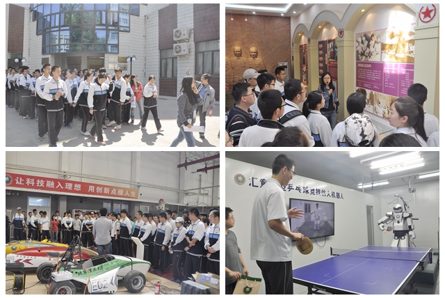 歡迎儀式結(jié)束后,來訪師生分成三組相繼參觀校史館、車輛學(xué)院學(xué)生創(chuàng)新創(chuàng)業(yè)實(shí)踐中心、機(jī)電學(xué)院智能機(jī)器人研究所等地。在校史館,講解人員通過一幅幅老照片,耐心細(xì)致地為大家講述北理工的發(fā)展歷程;在車輛學(xué)院學(xué)生創(chuàng)新創(chuàng)業(yè)實(shí)踐中心,車隊(duì)負(fù)責(zé)人為大家展示了節(jié)能競技賽車、大學(xué)生方程式賽車等自主研制車型以及車隊(duì)在國內(nèi)外比賽中所取得的榮譽(yù),并就同學(xué)們提出的問題進(jìn)行解答;在機(jī)電學(xué)院智能機(jī)器人研究所,大家參觀了新型的主要用于醫(yī)療手術(shù)的微小型機(jī)器人實(shí)驗(yàn)室,并與“匯童”系列仿人機(jī)器人進(jìn)行了乒乓球比賽等互動(dòng)活動(dòng),獲得了在場師生的一致好評(píng)。