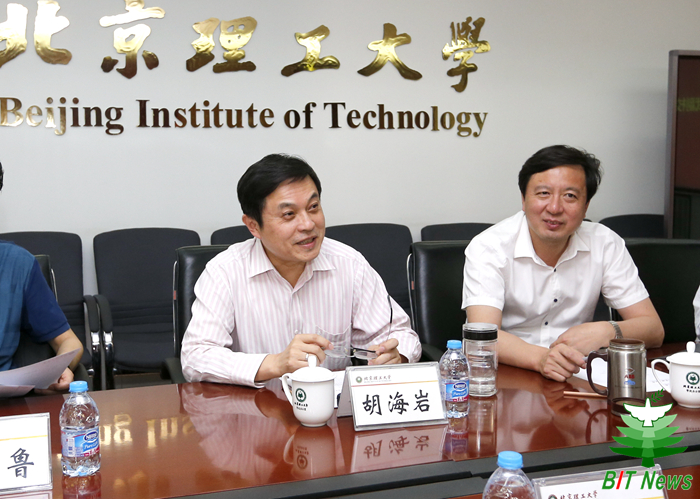 胡海巖對許希武一行表示熱烈歡迎。他在講話中重點介紹了北理工從“強地、揚信、拓天”到“地、信、天”集成發展的特色發展戰略,以及新形勢下北理工科技創新面臨的機遇和挑戰。