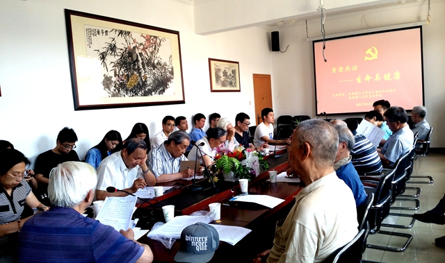 延續生命、永葆健康、防治疾病、抗擊衰老是人類永恒的話題。2016年5月31日,關工委老年讀書會聯合生命學院學生黨支部在遠志樓210會議室舉辦了一場青老攜手共話“生命與健康”的互動交流活動。離退休教職工黨委書記蔡婷婷、副書記李振江、生命學院輔導員劉惠康與老年讀書會的老黨員、生命學院2016級碩士第一黨支部全體黨員近40人參加了讀書交流活動。
