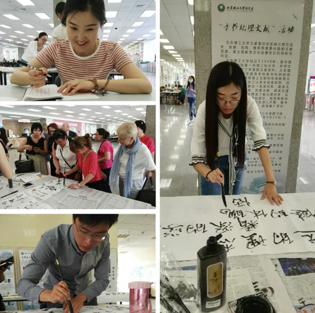 熱情的讀者通過(guò)抄寫(xiě)北理文獻(xiàn),加深了關(guān)于北理歷史及文化的認(rèn)識(shí)和情感,進(jìn)一步了解館藏書(shū)籍,也激發(fā)了讀者的鋼筆、毛筆創(chuàng)作熱情,涌現(xiàn)百余篇,為弘揚(yáng)延安根。軍工魂起到推動(dòng)作用。此次活動(dòng)不僅吸引了北理的學(xué)生還有大量的留學(xué)生及參觀團(tuán)參與。他們不僅被北理的校園文化所吸引更對(duì)中國(guó)的傳統(tǒng)文化表現(xiàn)出極大的興趣。