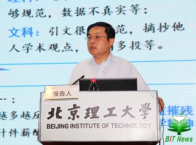 校長胡海巖院士以“建設一流學風、塑造一流大學”為題,做了大會報告。胡海巖從學風建設面臨的形勢、學風建設的主要舉措、學風建設中若干問題的對策及建議三個部分做了闡述,并結合當前學術界存在的浮躁、學術不端的現象和學校發生的學術不端案例進行入學剖析,提出了防范學術失范的具體建議和對策。他提出:在一流大學建設中,必須高度重視學風建設,全面加強建章立制、學風教育、科學評價、失范查處等工作,既要重視短期治理和案例查處,又要重視健全長效機制和營造嚴謹氛圍。他希望研究生導師們嚴于律己、率先垂范,加強對研究生的學術道德教育,努力擔當學風建設的楷模。胡海巖的報告引起新導師的共鳴,現場有多位導師就學術道德建設問題進行提問,胡校長一一回答了導師們提出的問題。