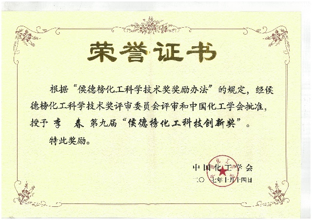 “侯德榜化工科學(xué)技術(shù)獎(jiǎng)”是為紀(jì)念侯德榜先生一生為化學(xué)工業(yè)和化工科技事業(yè)發(fā)展所做的貢獻(xiàn),同時(shí)為激勵(lì)我國(guó)廣大化工科學(xué)技術(shù)工作者投身于科教興國(guó)的化工事業(yè),由中國(guó)化工學(xué)會(huì)于1998年設(shè)立,并經(jīng)中華人民共和國(guó)科學(xué)技術(shù)部批準(zhǔn),國(guó)家科學(xué)技術(shù)獎(jiǎng)勵(lì)工作辦公室頒發(fā)登記證書(shū)(國(guó)科獎(jiǎng)社證字第0013號(hào)),該獎(jiǎng)項(xiàng)由中國(guó)化工學(xué)會(huì)和中國(guó)科學(xué)技術(shù)發(fā)展基金會(huì)“侯德榜科技發(fā)展基金”管委會(huì)管理,是我國(guó)化工領(lǐng)域的權(quán)威獎(jiǎng)項(xiàng),該獎(jiǎng)下設(shè)“成就獎(jiǎng)”、“創(chuàng)新獎(jiǎng)”和“青年獎(jiǎng)”三個(gè)子項(xiàng)。多年來(lái),“侯德榜化工科學(xué)技術(shù)獎(jiǎng)”為培養(yǎng)舉薦優(yōu)秀化工科技人才、助推科技精英脫穎而出、激發(fā)科技人才創(chuàng)新潛力做出了卓越貢獻(xiàn)。