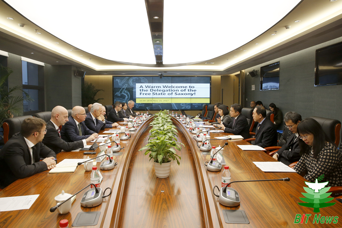 Tillich州長感謝胡校長的熱情接待。他高度評價了北京理工大學的辦學成果,并介紹了來訪成員以及薩克森州的經貿和科研概況。