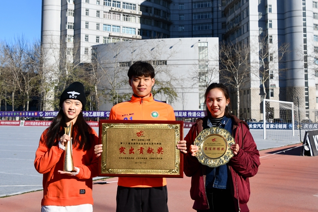 編輯:韓姍杉 審核:董兆波 閱讀次數(shù):11月29日,中華人民共和國第十三屆學(xué)生運動會北京代表團(tuán)表彰大會在清華大學(xué)舉行。北京市教委、北京市體育局、共青團(tuán)北京市委和北京市大學(xué)生體育協(xié)會相關(guān)領(lǐng)導(dǎo)出席。在表彰會上,北京市代表團(tuán)授予我校 “突出貢獻(xiàn)獎”,授予我校足球隊 “最佳拼搏獎”。