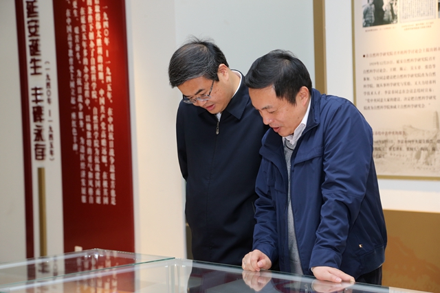 在校史館,張軍、胡海巖駐足一幅幅圖片、一件件展品,認真回望北理工輝煌的辦學歷史,追尋北理工的發展根脈,重溫徐特立老先生教育思想,感受北理工的紅色基因,傳承北理工精神。胡海巖對北京理工大學辦學理念、大學精神作了詳細介紹,新老校長進行了深入交流。