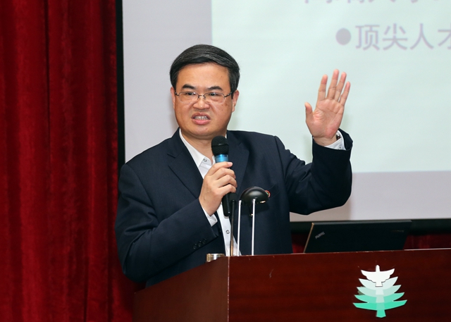 他指出,要提高思想認識、改進工作作風,確?!半p一流”建設(shè)出實效。一要提高政治站位,旗幟鮮明講政治,堅決維護習近平總書記在黨中央和全黨的核心地位,維護黨中央權(quán)威和集中統(tǒng)一領(lǐng)導(dǎo)。二要強化一流意識,堅持目標導(dǎo)向,以一流標準謀劃推進“雙一流”建設(shè),解放思想,著眼未來,以高標準厘定目標,以嚴要求狠抓落實。三要強化改革意識,堅持問題導(dǎo)向,全方位深層次推進綜合改革,迎難而上、深入剖析、精準發(fā)力,從機制體制上尋找突破口,以一往無前的勇氣和奮發(fā)進取的精神推進改革。四要強化本領(lǐng)意識,全面提高干部隊伍的戰(zhàn)斗力,持續(xù)加強領(lǐng)導(dǎo)干部理想信念教育、持續(xù)加強領(lǐng)導(dǎo)干部素質(zhì)提升、持續(xù)加強領(lǐng)導(dǎo)干部能力建設(shè)。五要發(fā)揚“釘釘子”精神,敢于動真碰硬,積極主動研究謀劃改革落實舉措;要以踏石留印、抓鐵有痕的勁頭,敢于擔當、善抓重點、善做善成;要用實實在在的發(fā)展成效,實實在在的師生收獲,堅定發(fā)展信心,進一步促進習近平新時代中國特色社會主義思想和黨的十九大精神在北理工落地生根。六要打造一流校園生態(tài),著力營造干事創(chuàng)業(yè)發(fā)展氛圍,打造風清氣正的政治生態(tài)、崇尚真理的學術(shù)生態(tài)、美麗和諧的宜學生態(tài)、一流的校園文化,步調(diào)一致、同頻共振,齊心協(xié)力推動學校新發(fā)展。