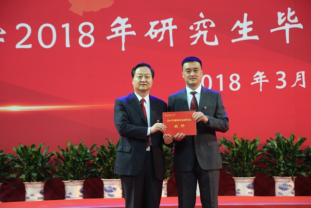 校黨委書記趙長祿,校長、中國工程院院士張軍,副校長李和章,紀委書記楊志宏,副校長、中國工程院院士陳杰,副校長、中國科學院院士方岱寧,校長助理汪本聰、楊亞政、龍騰以及學校各部門負責人,各學院院長、書記和學院相關領導,教師代表、校友代表、部分學生家長出席了典禮。1740名2018年春季畢業碩士研究生、博士研究生參加了畢業典禮并接受學位授予。典禮由副校長王曉鋒主持。