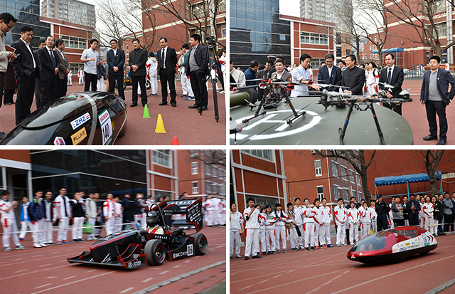 講座結束后,張軍親率大學生方程式賽車隊、大學生無人車隊、大學生節能車隊、大學生巴哈越野車隊和大學生“飛鷹”無人機隊等北京理工大學大學生科技創新代表團隊與人大附中學子面對面交流,引發廣大中學生的熱烈“追捧”,“燃爆”校園科創熱情。