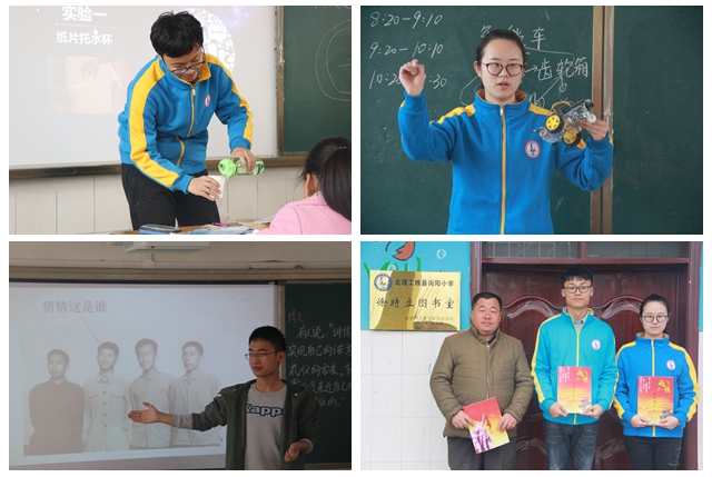 向陽小學建地處偏僻,硬件條件差。到校之初,宣講小組克服了條件簡陋等困難。沒有辦公室,大家就把幾張木桌子拼在一起備課;沒有宿舍,同學們就搬來上體育課用的墊子,鋪上被子將就入睡。第二天起來,一看到孩子們渴求知識的目光,宣講小組的成員們立即精神百倍。成員們用生動的教學方式將黨的十九大精神融入到課程中。小組成員何循潔用一首改編的歌曲《新時代,剛好遇見你》,講述了新時代黨和國家的輝煌成就。小組成員袁祥博則通過天宮一號發射、蛟龍入海等視頻,講述了中國在新時代取得的輝煌成就,讓小朋友們暢想未來,樹立起民族自信心與國家自豪感?!翱萍紕撔率歉粐鴱妵闹匾侄巍?,宣講小組成員李致遠、楊雨晴查閱了大量資料,將實踐與理論相結合,準備了十余種科普小實驗,小朋友們在歡聲笑語中感受物理學、化學的魅力。 “少年智,則國智;少年強,則國強” ,宣講小組成員桂碧麟設計了強身健體、妙趣橫生的智力小游戲,帶領孩子們進行了素質拓展。