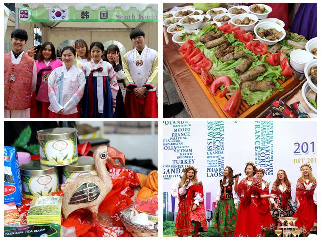 在舞臺區,各國準備的文藝表演贏得觀眾滿場喝彩。中國功夫氣勢恢宏;金發碧眼的俄羅斯、波蘭姑娘們為我們演繹了一場溫婉動人的江南傘舞;南非的學生帶來了熱情奔放的舞蹈,讓觀眾們一下子夢回非洲;還有來自尼日利亞、哈薩克斯坦、巴拿馬等國家的留學生組成的BIT International合唱團,動聽的演唱讓觀眾如癡如醉。拍照區一個個生動立體的卡通形象吸引了大小觀眾紛紛前來合影留念。不同國度、不同民族的國際文化元素在這里精彩綻放、交融升華!