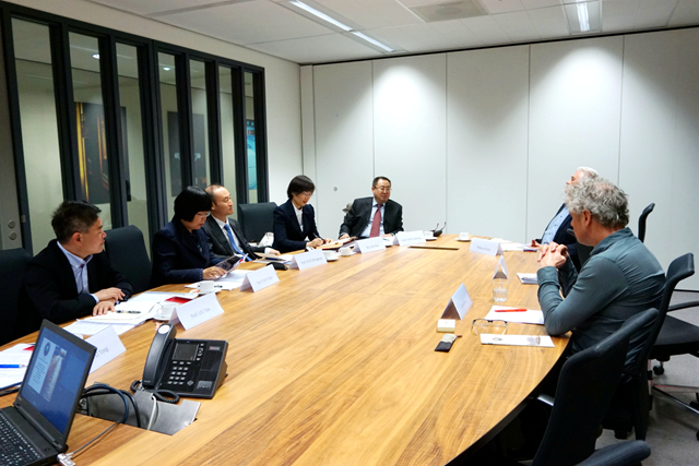 方岱寧一行與代爾夫特理工大學電子工程、計算與數學學院應用數學系主任Geurt Jongbloed教授、林海翔教授,機械、海洋與材料工程學院結構優化與力學系副主任Matthijs Langelaar教授、土木工程與地球科學學院材料、力學與管理設計系Bert Sluijs教授、宇航工程學院航天結構與計算力學系Boyang Chen博士等進行會談,雙方圍繞具體學科方向進行了深入的交流,初步達成了合作意向。