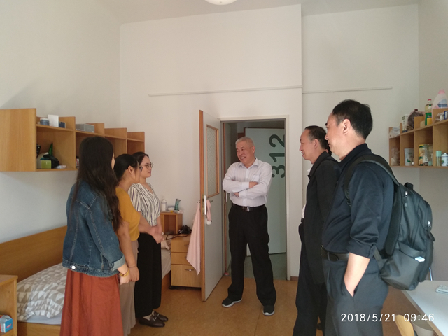 5月21日,李和章一行來到維也納大學(University of Vienna),看望了北理工在維也納大學學習的交換生。代表團還參觀了學生宿舍,對宿舍保衛管理及預防災害事故管理進行了實地考察。