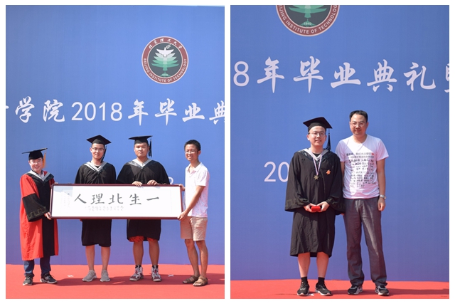 本科畢業生劉正夫、郇越代表全體畢業生向學院贈送畢業禮物,李炳照、蔡亮代表學院接受了贈送。書法作品“一生北理人”表達了每一位畢業生的心聲,他們將秉承北理工精神,不忘初心,不懈進取,用努力和成績擔當起民族復興大任。曹鵬代表學院向畢業生授予校友勛章。