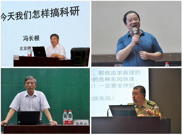 徐特立科學營邀請中國科協原書記處書記、副主席、北京理工大學原副校長馮長根以“今天我們怎樣搞科研”為主題進行授課。馮長根教授用身邊人身邊事舉例,就以上問題給出了自己的解答,并條理清晰地列出了二十點要求,表達了對廣大青年投身科研的期望。北京理工大學機電學院羅慶生教授為營員們詳細講解了機器人的相關知識,使營員理解“機器人的世界是美妙的,機器人的前景是美好的,機器人的未來要靠同學們去開拓,讓機器人幫助我們實現富國強兵的中國夢!”。北京理工大學機電學院馮順山教授向營員們們分享了爆炸科技的原理與意義,介紹了爆炸科技在國防以及國民經濟中的應用,讓營員們體會到了爆炸科學與技術的進步對于國家發展的重要意義。國防大學房兵教授通過講述國防領域一系列重大事件,讓營員們對國際形勢和大國外交有了不同角度的認識,向營員們傳遞“真槍實炮才是真理”“大道理要管小道理”“低頭需要勇氣,抬頭需要實力”等人生哲理。