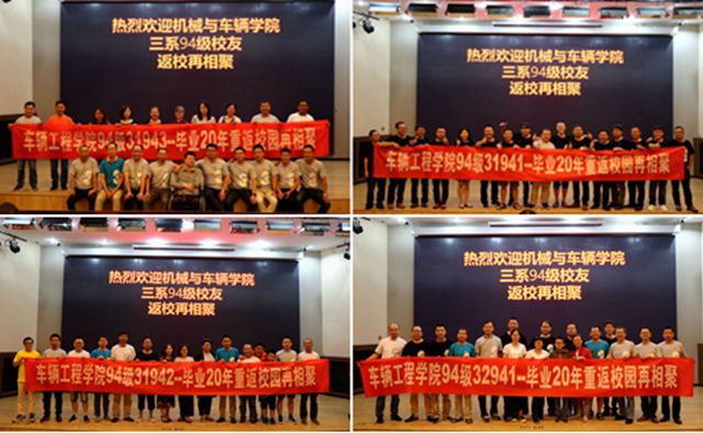 編輯:武穎 審核:范文輝 閱讀次數:8月18日,機械與車輛學院31、32專業1994級本科生80余名校友在闊別學校二十年之后,重返母校,共慶畢業二十周年,追憶同窗舊事,暢談人生感悟,展望美好未來。學院黨委書記左正興等學院領導以及原任課教師張振華、林程、張衛正、黃華、劇引芳等出席此次返校慶祝大會。