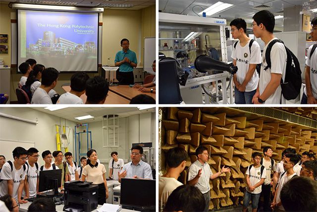 在此次交流訪問的第一站——香港理工大學機械工程學系,同學們聆聽了香港理工大學機械工程學系主任石三強的講座,初步了解了香港理工大學的歷史,招生比例以及發展的情況,并對內地與香港的教育體制,人才選拔制度有了初步的了解與認識。之后,師生們參觀了能源轉換先進材料實驗室、材料與力學實驗室、航空實驗室、聲學實驗室、水洞實驗室、3D打印區、智能自動化實驗室以及香港理工大學方程式賽車隊。