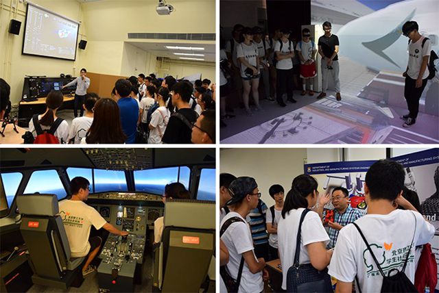 實踐團于第二日上午對香港理工大學航空工程跨領域學部進行了訪問交流,該學部2016年成立,下設航空工程本科專業,著眼于香港地區對于航空業人才的需求,培養具有本科學位的飛行員、飛行管制員、航空工程師。在參觀中,團隊成員分為多組,每組在飛行器駕駛艙模擬器內進行起飛控制,在老師的指導下,大家了解到各個儀表盤的作用以及起飛時先后順序和注意事項。第二日下午,實踐團來到香港大學,對香港大學的工業及制造系統工程系進行訪問交流。該系的主要研究先進制造、金融、物流、自動化、虛擬現實等方向,與北理等內地高校的主攻方向稍有區別。港大學長帶領實踐團參觀了VR研究實驗室,通過吸附在VR眼鏡上的探測器,同學們產生了立體的視覺體驗,眼中見到的景象與操作者的遙控和肢體動作產生互動,恍若身臨其境,極大的引發了大家對VR的興趣。隨后,實踐團參觀了港大的訓練中心,訓練中心有很多關于3D打印的設備和場地,學校投入資金購買物資,由高年級學長設計組裝,低年級學生按照課程或項目需求,通過制圖軟件設計、用3D打印成品。這種模式對各年級學生均有很好的鍛煉,極大地提高了學生的動手實踐能力。