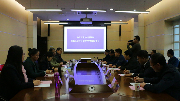 編輯:石莉 審核:婁秀紅 閱讀次數:為深入貫徹落實習近平新時代中國特色社會主義思想和習近平扶貧開發戰略思想,貫徹落實學校黨委統一部署,打贏打好脫貧攻堅戰,助力方山縣脫貧任務。10月17日是國家第五個扶貧日,人文與社會科學學院領導班子與方山縣委、政府領導在良鄉校區深入座談。方山縣委副書記閆斌勝,政協主席劉月順,縣委常委、組織部長任志勇,政府副縣長高云林,政府副縣長王杰,脫貧攻堅領導小組副組長李葉出席座談會,人文與社會科學學院領導班子成員參加座談。