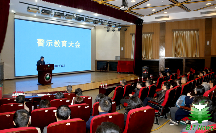 編輯:郭強 審核:魏名山 閱讀次數:2018年10月25日,北京理工大學召開警示教育大會,學習傳達工業和信息化部警示教育大會會議精神。校領導、校長助理、全體五級管理人員和部分六級管理人員參加大會。