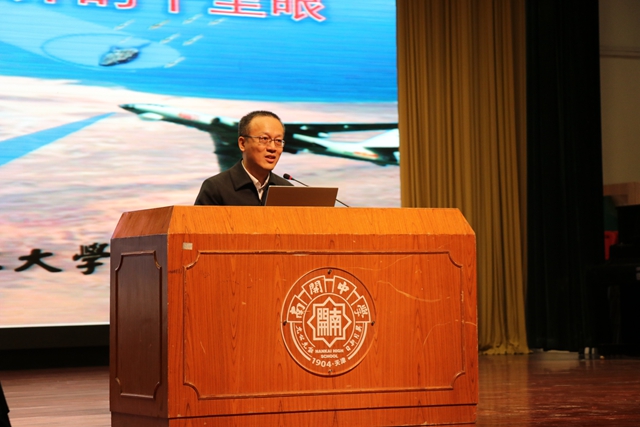 活動伊始,劉浩代表天津市南開中學師生熱烈歡迎龍騰教授一行的到來,他在致辭中表達了對龍騰教授做客“南開公能講壇”的歡迎,對北理工學辦學特色、卓越成就和國防貢獻的肯定,和對加深兩校友誼和開展更深層次合作的殷切希望。龍騰代表北京理工大學向天津市南開中學送達2018年招生錄取喜報、“優秀生源基地“牌和特色紀念品坦克模型。