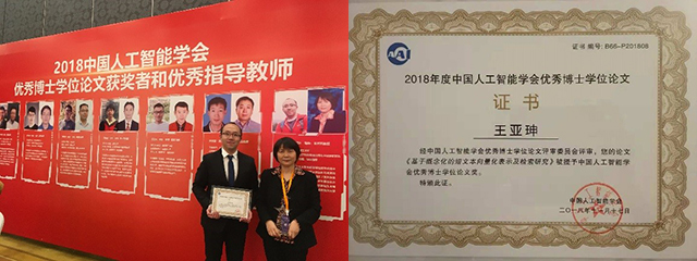 中國人工智能學會是中國智能科學技術領域唯一的國家一級學會,王亞珅博士的學位論文在38篇參選論文中脫穎而出,最終與其他8篇論文一起獲得殊榮。其學位論文針對短文本表示建模若干重要基礎理論與應用問題進行了系統研究,主要包括支持異質語義關聯關系協同建模推理的短文本概念化方案、支持模擬人類閱讀注意力習慣的短文本向量化方案、支持微博檢索噪聲過濾的概念反饋查詢擴展方案等,相關成果發表于人工智能與自然語言處理領域頂級國際期刊IEEE Transactions on Knowledge and Data Engineering (TKDE),以及頂級國際會議ACL、WWW 等。