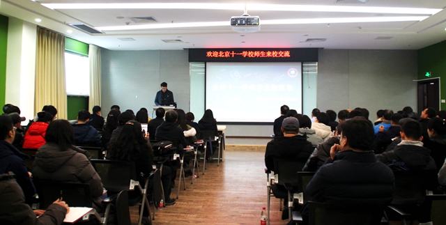 編輯:賀小琴 審核:張宏亮 閱讀次數:為進一步加強我校與中學的聯系,增進優秀生源對我校的了解及兩校的交流建設,2018年12月23日,北京十一學校學生及家長一行50余人來我校進行參觀交流,北京理工大學招生辦公室主任張東,自動化學院院長夏元清、黨委書記金軍、院長助理袁丹及學院輔導員和學生代表熱情接待了來訪家長學生,本次活動由副書記、副院長張宏亮主持。