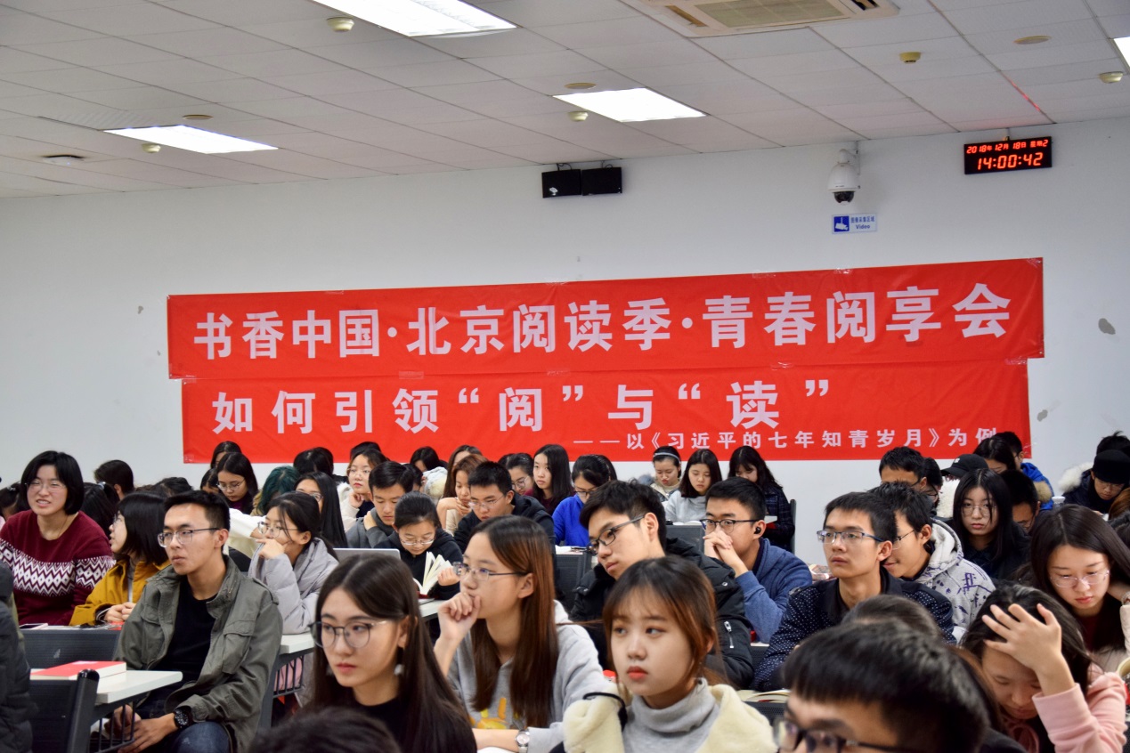 編輯:王笑竹 審核:彭明雪 閱讀次數:為深入學習貫徹黨的十九大精神,落實習近平總書記關于立德樹人、青年學生成長成才等重要論述,按照學校“共讀一本書”活動要求,12月18日下午,經管書院聯合北京大學生閱讀聯盟舉辦北京閱讀季?青春閱享會活動。活動邀請文化學者、中國財政經濟出版社副編審崔岱遠,圍繞如何引領“閱”與“讀”——以《習近平總書記的七年知青歲月》為例,引導新生堅定理想信念,培養良好閱讀習慣,啟發新生在閱讀過程中關照自身生長、思考人生價值。北京大學生閱讀聯盟何佳梁,黨委學生工作部副部長張艦月,經管書院學生工作副院長彭明雪出席活動,經管書院一百余名學生參加了活動。
