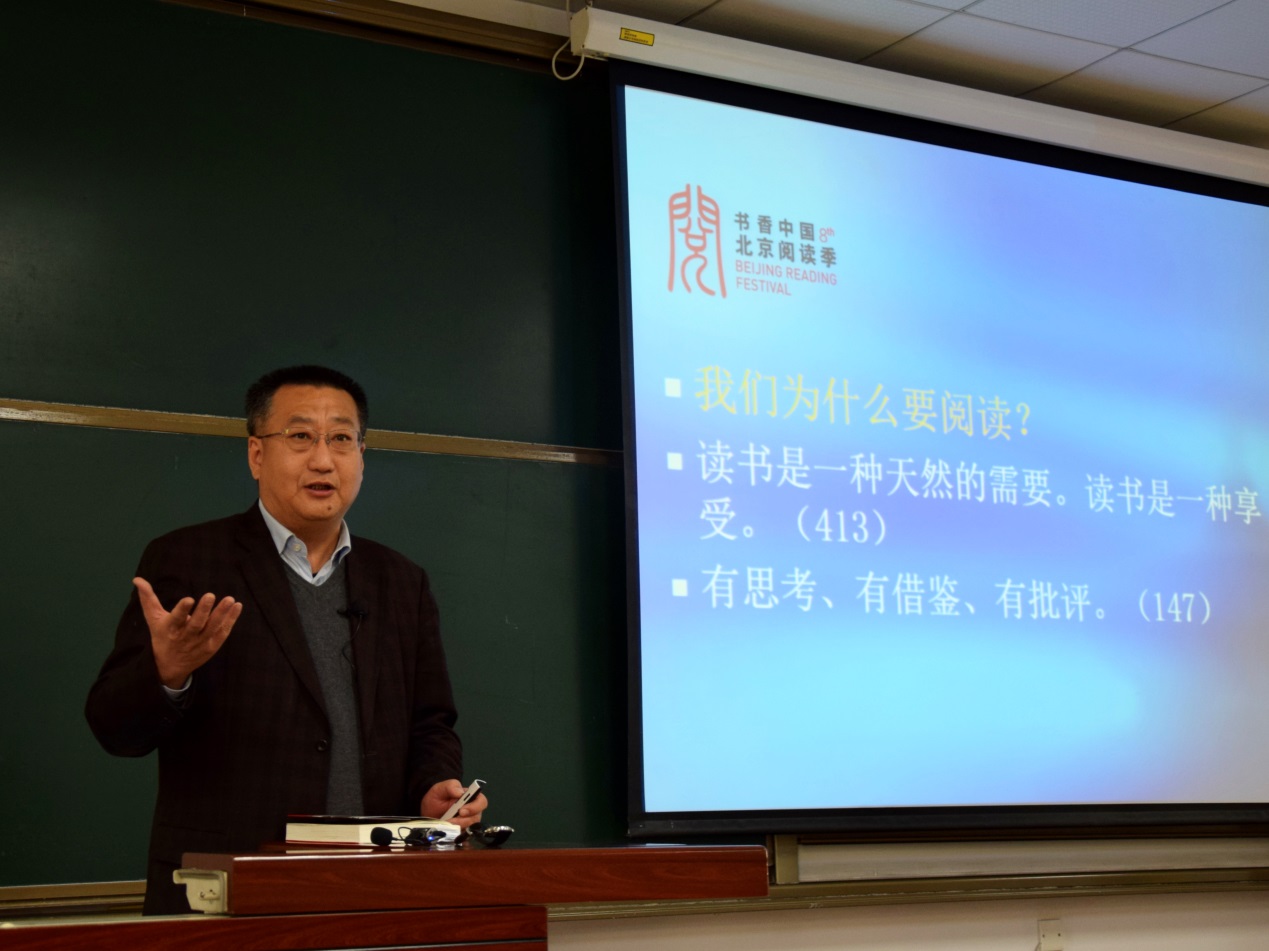 崔岱遠圍繞學習與閱讀的區別、我們為什么要閱讀、如何選擇一本書、閱與讀的區別和形態、如何對待電子閱讀、讀書會的好處、閱讀與文化自信的關系七個方面展開講解,以《習近平的七年知青歲月》為例,向同學們講授閱讀技巧,帶領同學們走進青年習近平的知青歲月。當談及“我們為什么要閱讀”時,崔岱遠強調,閱讀是生活的一部分,它可以拓寬視野,增加人生閱歷,讓我們“有思考,有借鑒,有批評”。他還強調,人的一生并不是一帆風順的,而是像波一樣起起伏伏。在人生的波峰時,閱讀可以平和心態;在人生的波谷時,閱讀可以帶來希望。