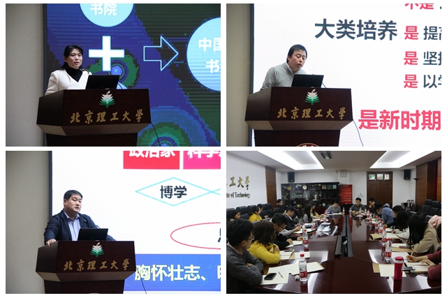 學生工作部副部長張艦月從書院制改革背景、書院1.0模式運行成效、書院2.0模式構想等方面對北理工書院制育人模式進行了階段性匯報與展望。教務部副部長肖烜結合大類培養背景與理念、進展與成效、問題與計劃等方面工作進行了主題發言。明德書院副院長李冰做了“六藝載道明德之路、文化鑄造書院之魂”的報告,以明德書院為例介紹了在書院文化建設、機制運行等方面的具體舉措。