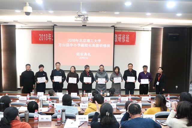 編輯:陳曉燕 審核:侯愛軍 閱讀次數(shù):2019年1月6日,北理工教師發(fā)展中心組織“方山縣中小學(xué)副校長高級研修班”結(jié)業(yè)儀式。44名學(xué)員、理工附中黨委副書記潘軍、理工附小直屬黨支部書記饒曉煒、幼兒園園長沈紅、教師發(fā)展中心副主任侯愛軍出席儀式。教師發(fā)展中心副主任仇芳主持儀式。