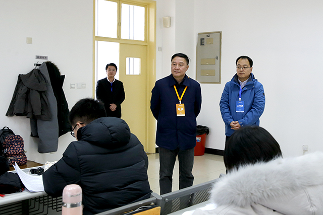 副校長王曉鋒在紀委監察處、教務部、招生辦公室、外國語學院等單位負責人的陪同下對各考場進行了巡視,詳細地詢問了生源質量情況。王曉鋒前往考務辦公室,慰問了全體考務人員,并對細致貼心的考務工作給予了肯定。