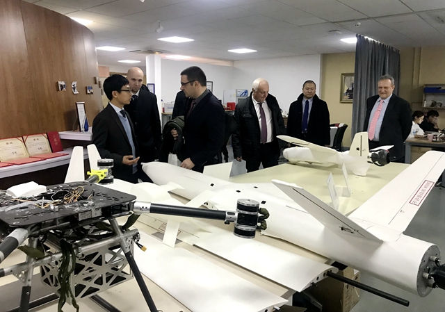 Stepanek感謝北理工的熱情接待。他表示,布爾諾科技大學(xué)非常重視與北京理工大學(xué)的合作,希望未來(lái)兩校通過(guò)政府間資助等多種途徑加深雙方在優(yōu)勢(shì)學(xué)科領(lǐng)域的合作。項(xiàng)昌樂和Stepanek分別代表兩校簽署了學(xué)生交換協(xié)議。代表團(tuán)一行還與宇航學(xué)院、自動(dòng)化學(xué)院舉辦了雙邊學(xué)術(shù)論壇,就兩校未來(lái)在航空航天、自動(dòng)控制領(lǐng)域的學(xué)術(shù)交流與合作展開了深入討論,并參觀了宇航學(xué)院無(wú)人機(jī)自主控制研究所。