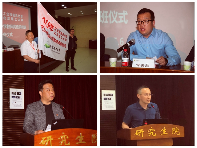 開班儀式上,工信部直屬機關黨委組織宣傳部副部長付武強為研修班授予班旗,學校黨政辦公室副主任兼對外合作辦公室主任鄒美帥表達了對研修學員的熱忱歡迎。他表示,北理工將深入貫徹落實黨中央、國務院和工信部各項扶貧工作部署,充分發揮北理工教育優勢資源,做好教育扶貧工作;理工附中黨委副書記潘軍表示理工附中附小會用最大力量支持教育扶貧事業;學員代表梁莉莉、秦談順表達了對研修學習的期待與向往。結業儀式上,教師發展中心副主任侯愛軍以“感謝、感動、祝福、歡迎”四個關鍵詞作總結發言,并表示中心將繼續在工信部和學校黨委的統一領導下,協同各部門持續為定點扶貧教育事業貢獻力量;班長湯海老師分享了一周研修的收獲與感悟,希望扶貧教育活動能夠一直開展下去,為奮戰在貧困區縣的教育工作者們創造學習成長的一流平臺。